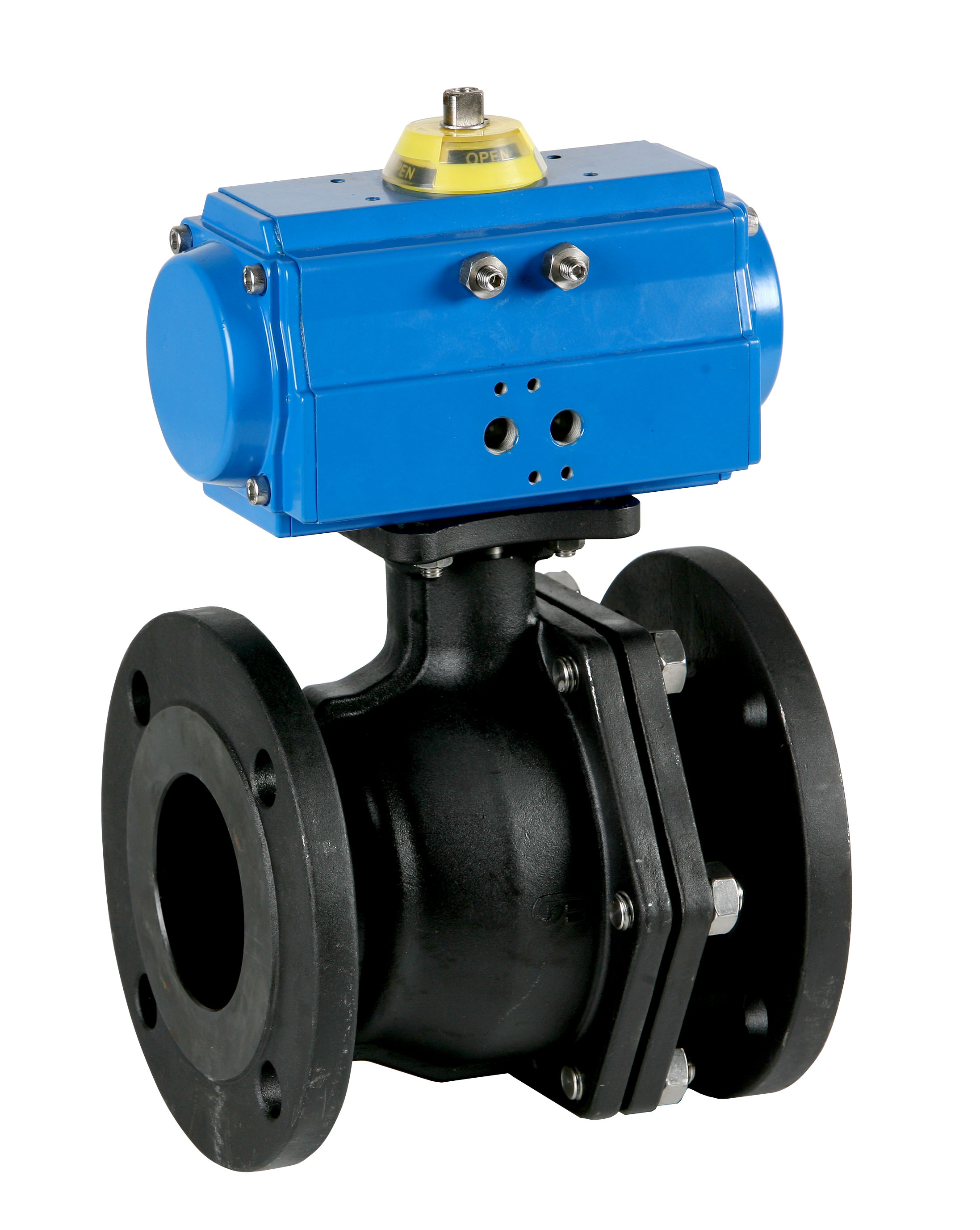 Válvula esfera 2 piezas bridada. Montaje directo de actuadores s/ISO 5211. Diseño fire safe. Dispositivo antiestático. Cuerpo: acero al carbono WCB (microfusión). Esfera y eje: AISI 316. Asientos: PTFE + 25 % Grafito. Tórica eje: vitón. Presión máx.: 19 kg/cm2. Temp. -30ºC +220ºC. Mando manual por palanca con sistema de bloqueo. Con actuador Gen-Air