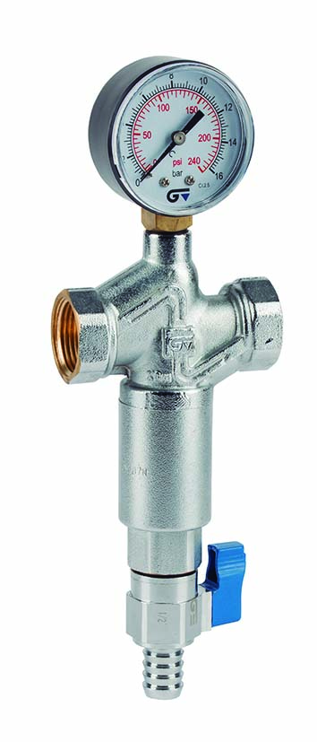PN 16. Construcción en latón UNE-EN 12165 cromado. Tamiz reforzado: acero inox. AISI 304. Luz: 100 micras. Junta NBR. Extremos rosca gas (BSP) H-H - ISO 228/1. Temp. máx. 110ºC.