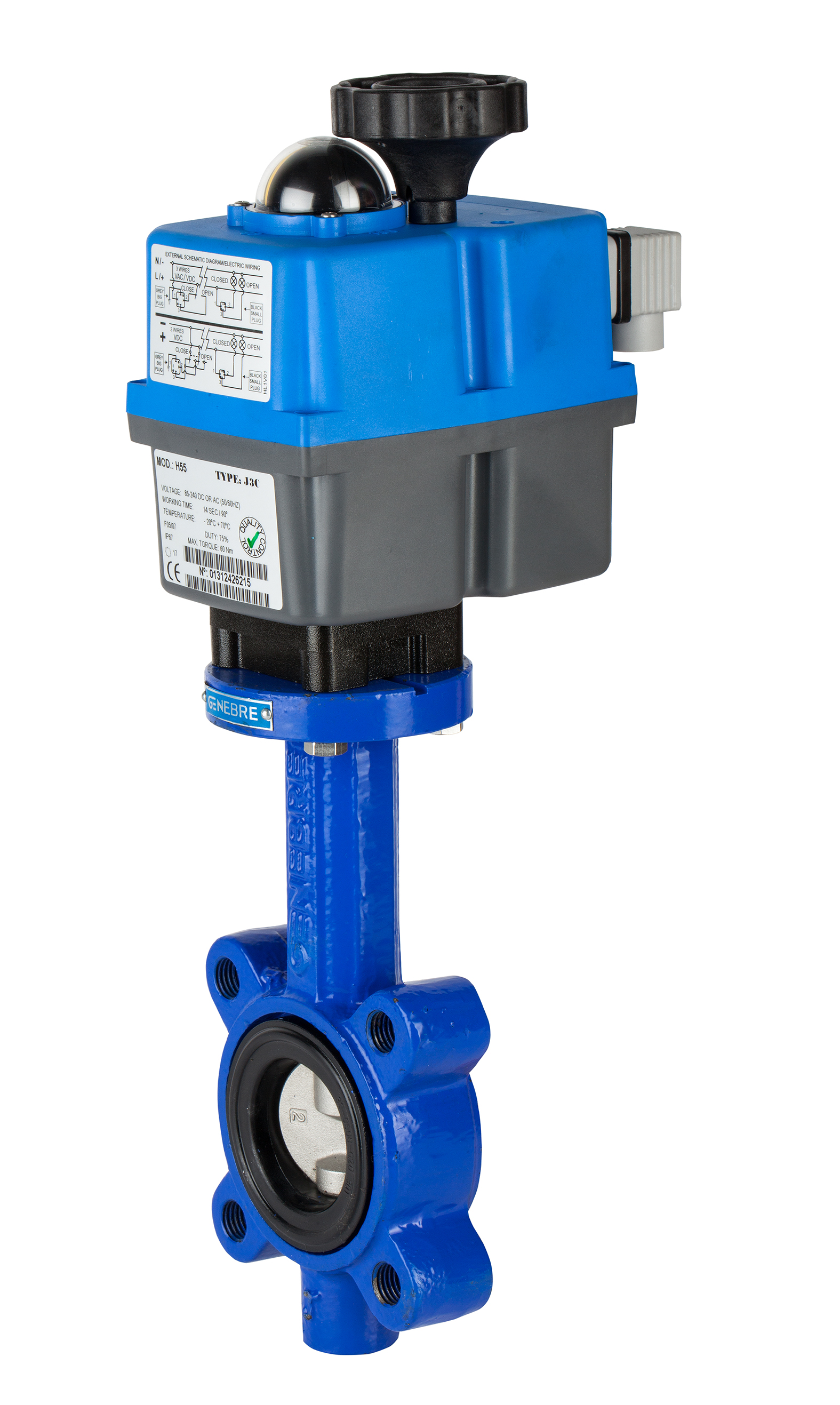 Con actuador eléctrico rotativo GE multivoltage.