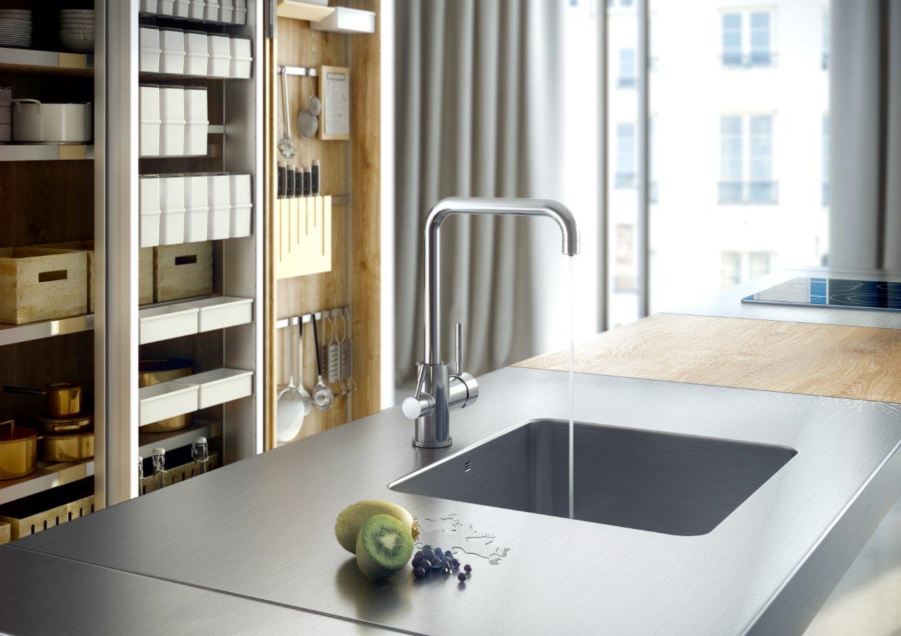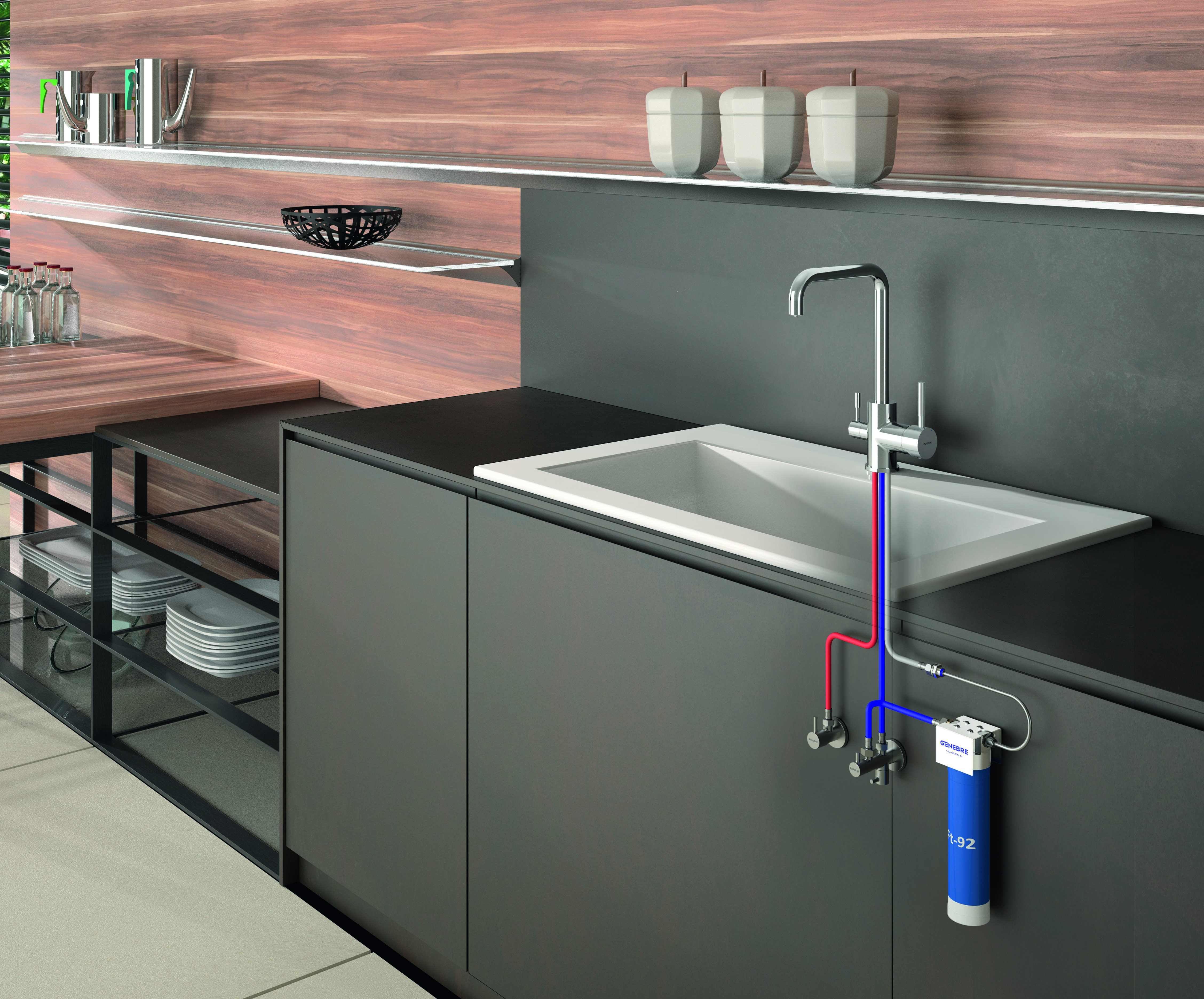 Grifo de cocina monomando 3 vías para instalación en repisa fabricado según norma UNE 19703 y norma NF XP P 41-280. Acabado cromado de alta calidad, se suministra con latiguillos de conexión de fácil instalación. Dotado de sistema GE COLD-START de ahorro de agua y energía se basa en la apertura siempre en agua fría, lo que se traduce en un gran ahorro energético al evitar que su caldera, calentador o termo eléctrico entre en funcionamiento indebidamente. Sistema de 2 aguas en una misma aplicación, mediante un caño bifuncional se consigue suministrar agua filtrada y de red sin mezclarse entre ambos. Porque sabemos que en la cocina hay tantas maneras de preparar una misma receta como cocineros dispuestos a interpretarla, te presentamos nuestra amplia gama de fregaderas de cocina.